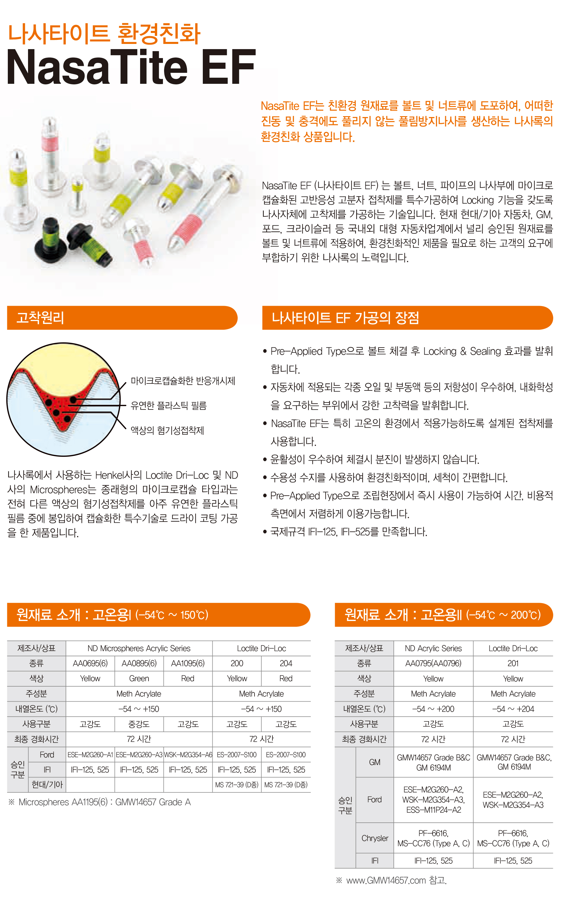 ¾ÆÅ©¸±À» ÁÖ¼ººÐÀ¸·Î ÇÏ´Â ¼ö¿ë¼ºÀÇ Ç®¸²¹æÁö Á¢ÂøÁ¦·Î, ND (¹Ì±¹ ¾Øµð) »çÀÇ Microspheres AA ½Ã¸®Áî ¿Í, Loctite (·ÏŸÀÌÆ®) »çÀÇ Dri-Loc (µå¶óÀ̶ô) Á¦Ç°À¸·Î Á¦Á¶ÇÕ´Ï´Ù.